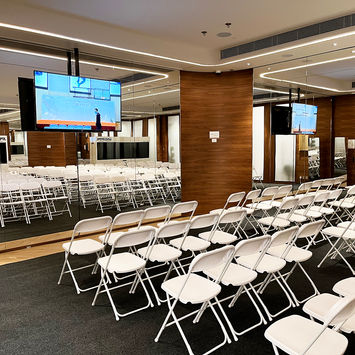 To accommodate the large audience, we strategically divided guests into separate function rooms while maintaining a unified experience through a professional multi-room PA system and real-time HD video broadcasting with zero latency. High-definition cameras and skilled operators ensured that presentations, voting procedures, and speeches were clearly visible on screens in every room, while our redundant audio setup guaranteed crystal-clear sound without delays or feedback.